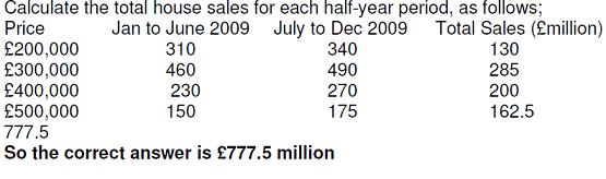 Total £400,000 house sales = 230 + 270 = 500 houses